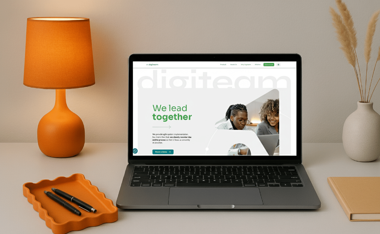 Unificamos a marca sob o nome "Digiteam" e definimos um conceito estratégico que guiaria todo o projeto de WebDev: "Liderar o Caminho" (Lead the Way).