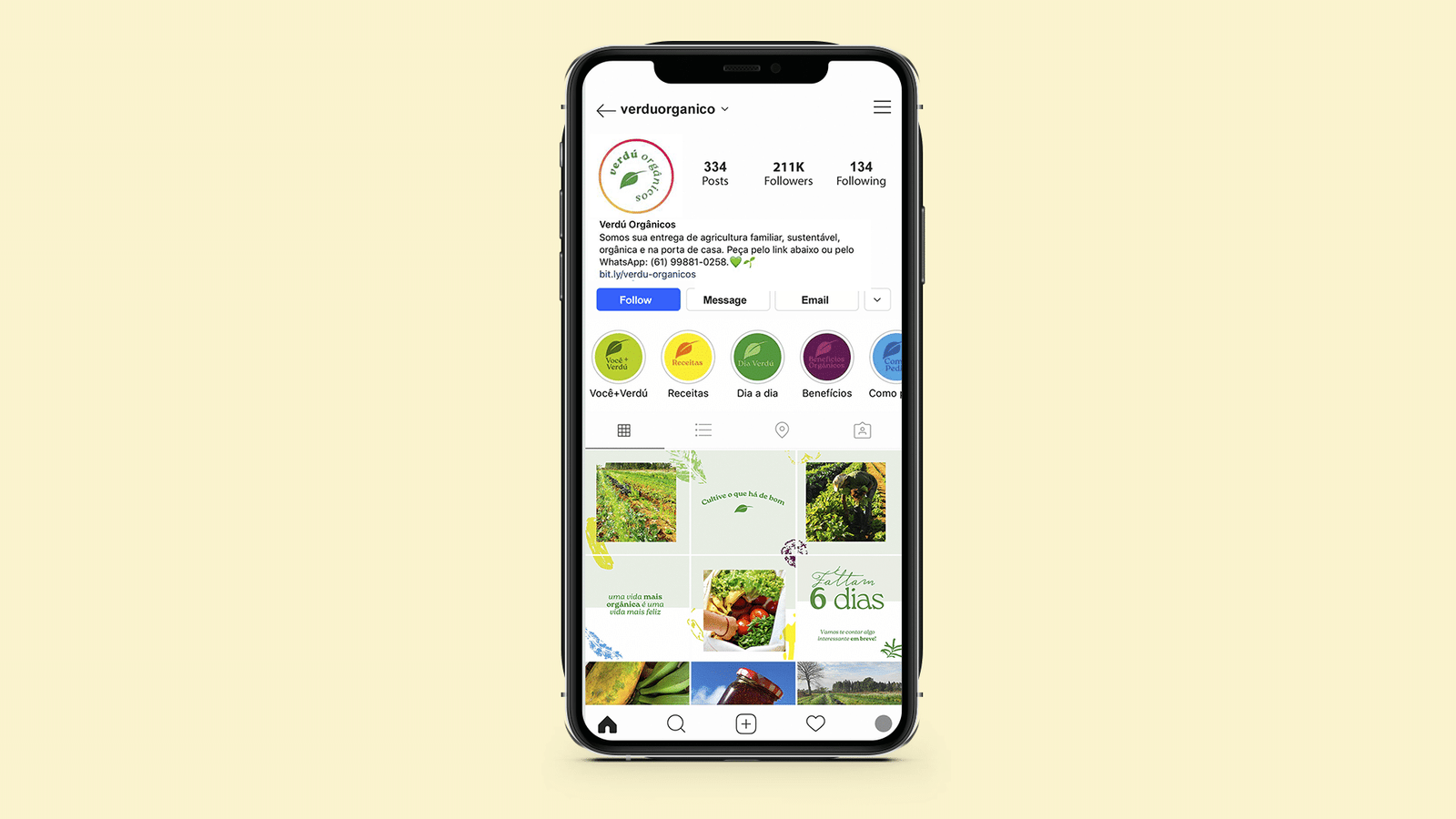 Apoiados em conceitos e práticas de agricultura familiar, redução de lixo e veneno, qualidade dos alimentos e praticidade, construímos um caminho único e autêntico para criar a personalidade de marca. Em seu nome, um apelido carinhoso da palavra "verdura" e da cor verde, tão presente neste universo. Assim nasce a marca Verdú Orgânicos, um delivery que leva a agricultura familiar de orgânicos do campo para a mesa de cada pessoa. Cultivando o que há de bom!